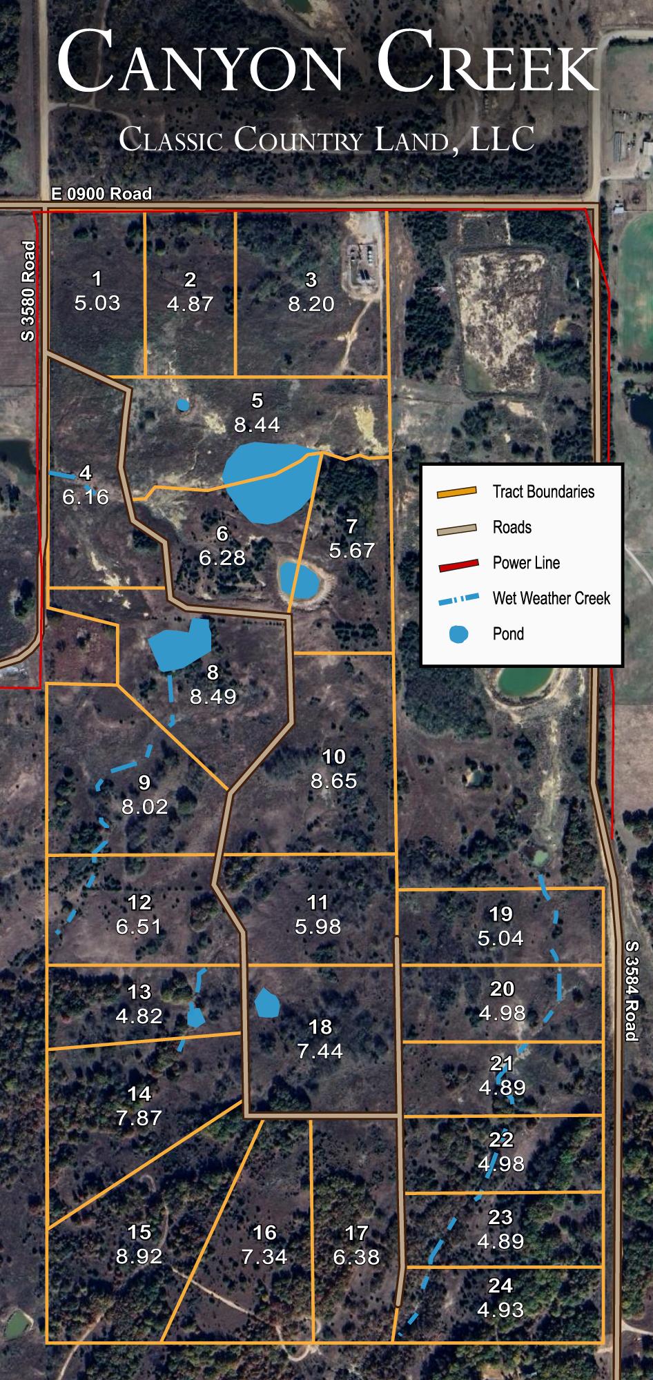 2 tracts available in Lincoln County, Oklahoma — ranging from 6.4 to 8.9 acres and $71,276 to $99,658. Pick your tract, pick your plan, and the land is yours. No credit check, no banks, no waiting.