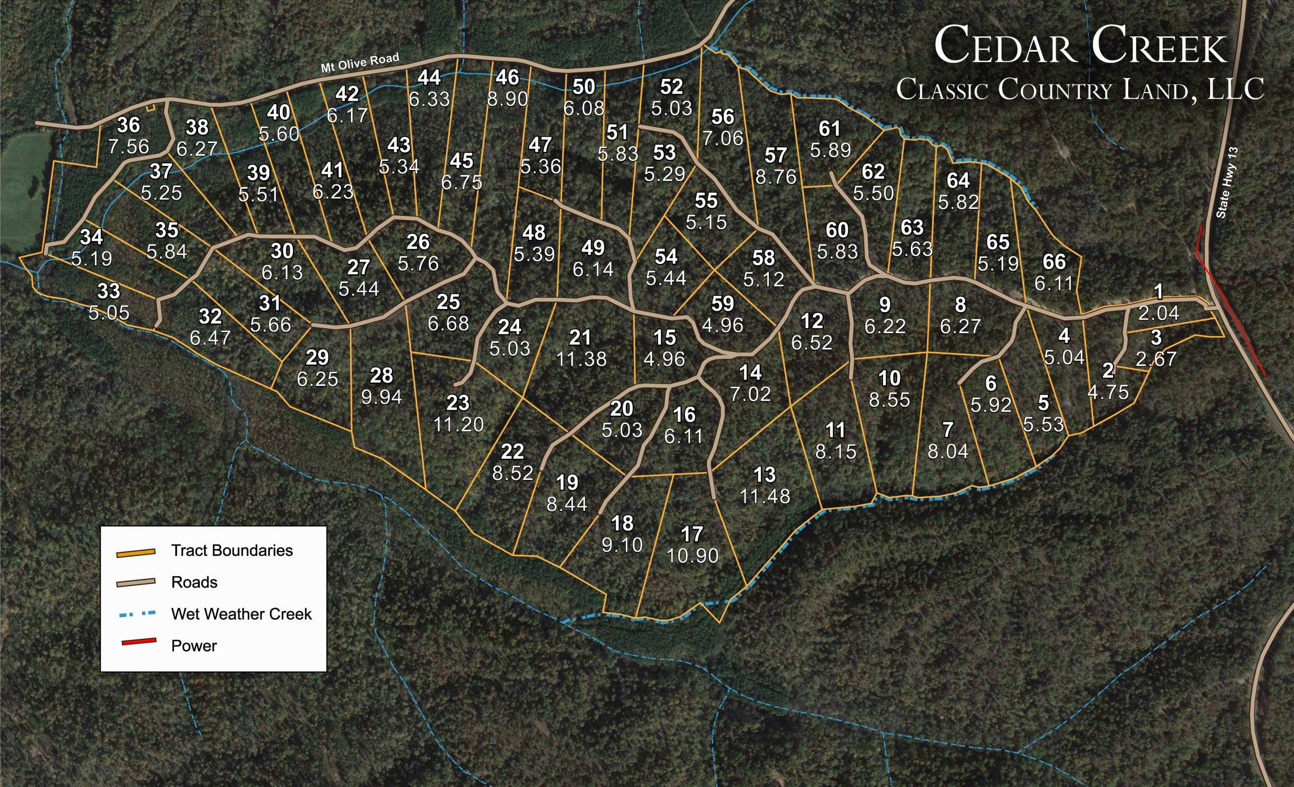 4 tracts available in Perry County, Tennessee — ranging from 5.0 to 11.4 acres and $38,397 to $77,094. Pick your tract, pick your plan, and the land is yours. No credit check, no banks, no waiting.